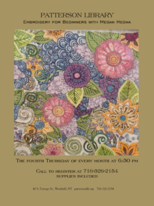 Calendar Add to Calendar Add to Timely Calendar Add to Google Add to Outlook Add to Apple Calendar Add to other calendar Export to XML When: February 26, 2026 @ 6:30 pm – 7:30 pm Repeats 2026-02-26T18:30:00-05:00 2026-02-26T19:30:00-05:00 Adult Program Art Class Classes Seniors workshop Embroidery for Beginners with Megan Hegna