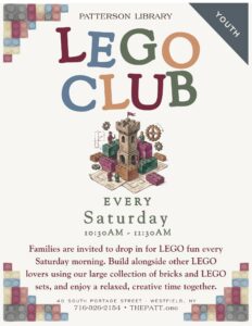 Families are invited to drop in for LEGO fun every Saturday morning. Build alongside other LEGO lovers using our large collection of bricks and LEGO sets, and enjoy a relaxed, creative time together.
